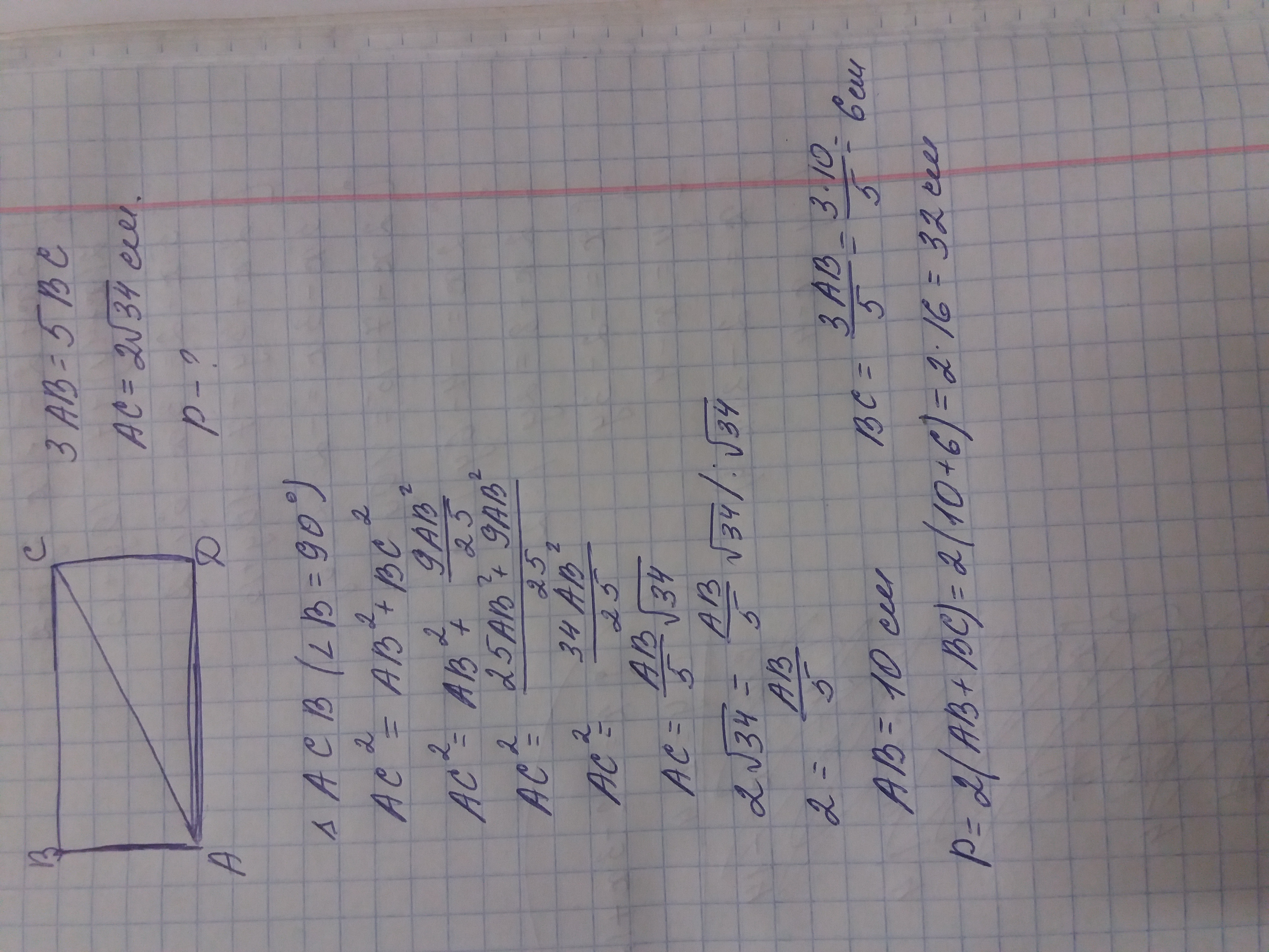 в прямоугольнике abcd 3ab=5bc и ac = 2√34см.найдите периметр прямоугольника.