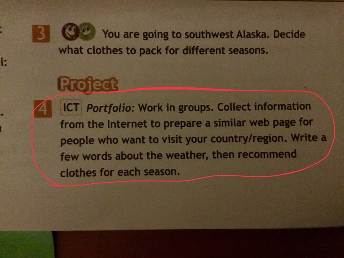 Портфолио: Работа в группах. Соберите информацию из интернета и подготовьте подобную web страницу для людей, которые хотят посетить твою страну\регион. Наптшите несколько слов о погоде и порекомендуйте одежду на каждый сезон