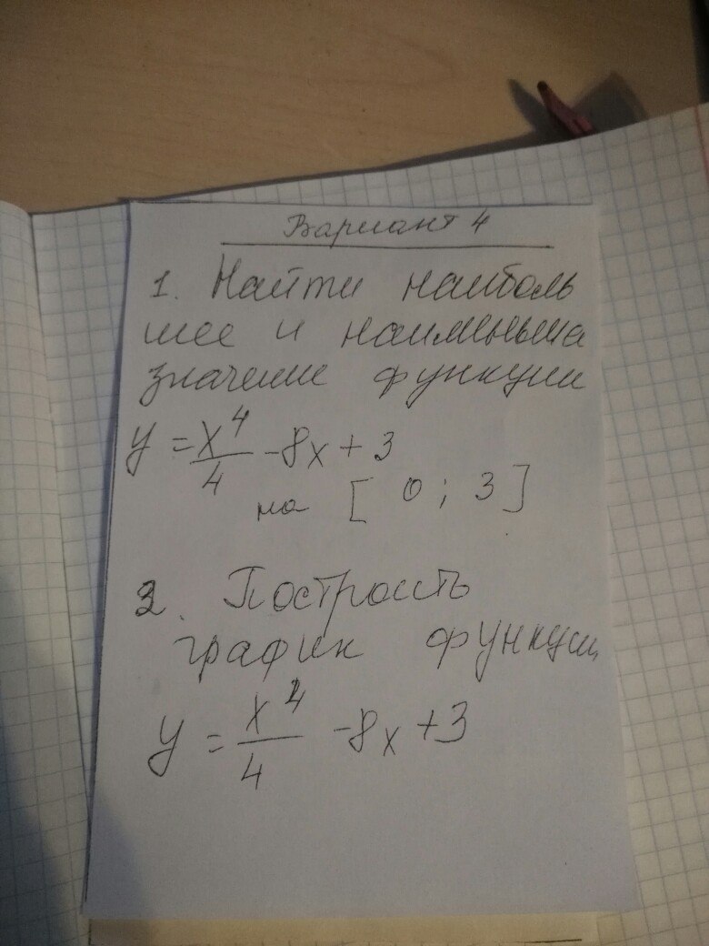 Для построения графика y=x⁴/4-8x+3 найдем некоторые точки, например, при каких у х=0. Также мы знаем, что y(2)=-9 - наим. значение функции.
