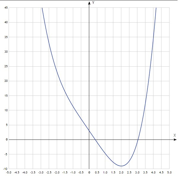 y(3)=3⁴/4-8*3+3=20,25-24+3=-0,75