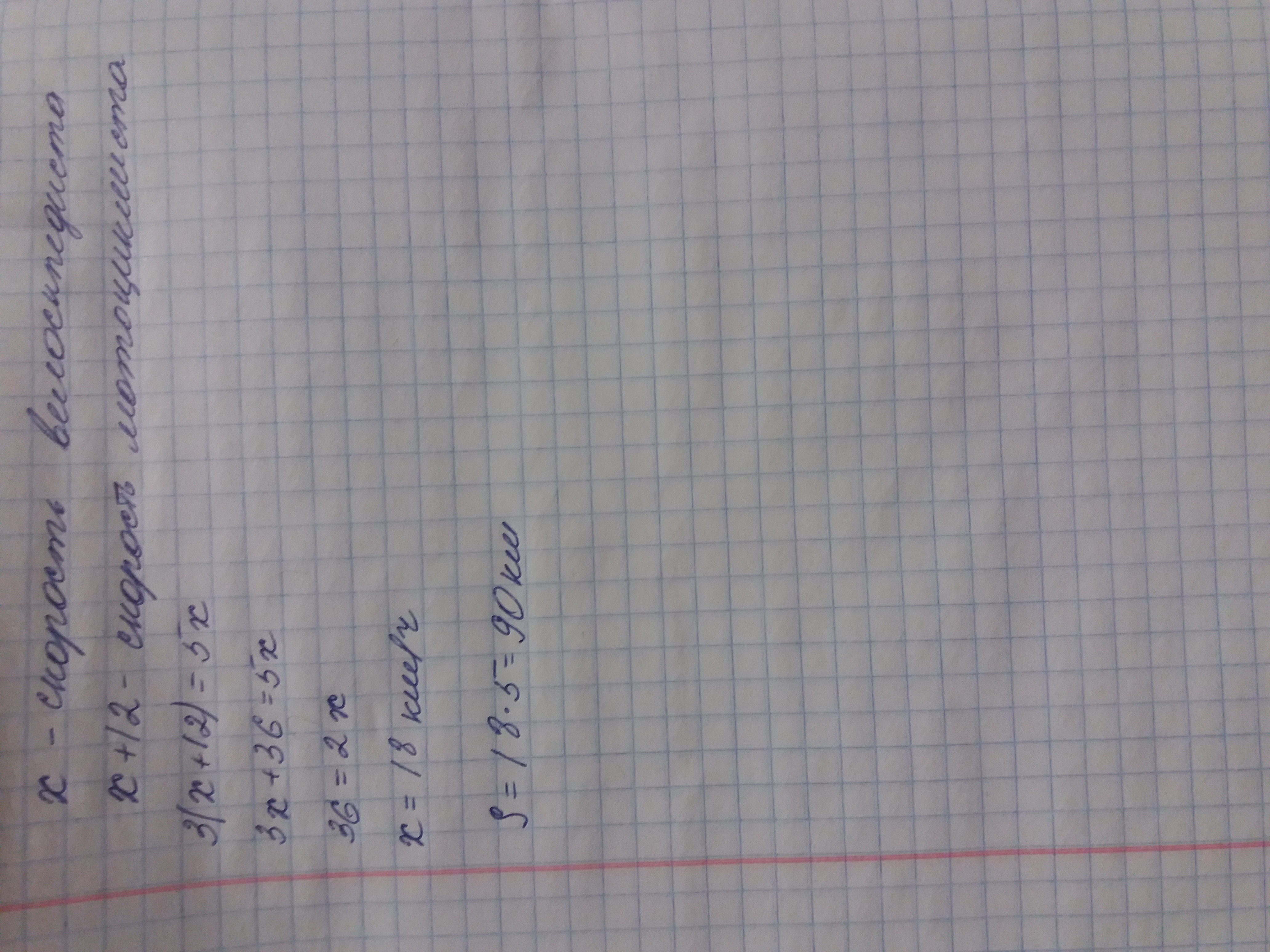 за 3 часа мотоциклист проезжает то же расстояние ,что и велосипедист за 5 ч. Какое расстояние они проезжают,если скорость велосипедиста на 12 км/ч меньше скорости мотоциклиста?