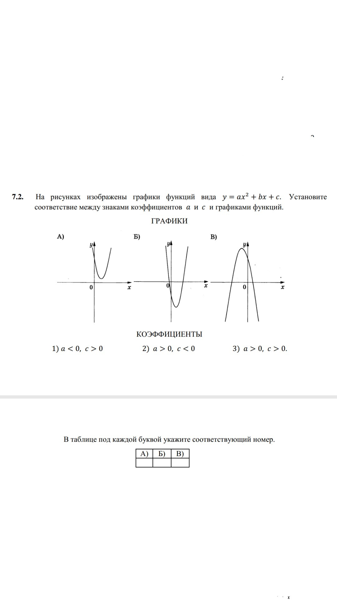 На рисунках изображены графики функций вида y = ax^2+bx+c Установите