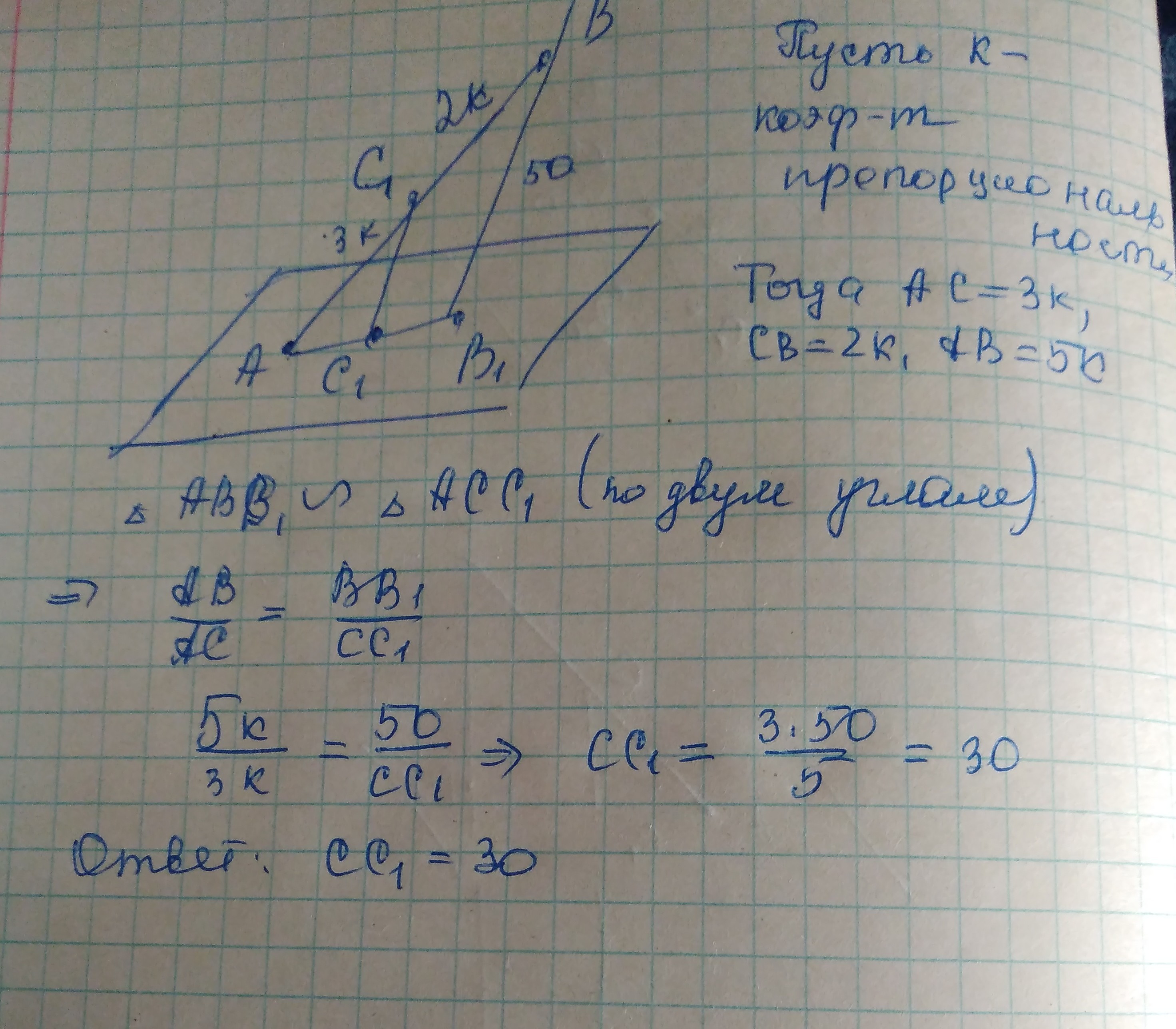 плоскость a в точках B1 и C1 соответственно. Найдите длину отрезка CC1,