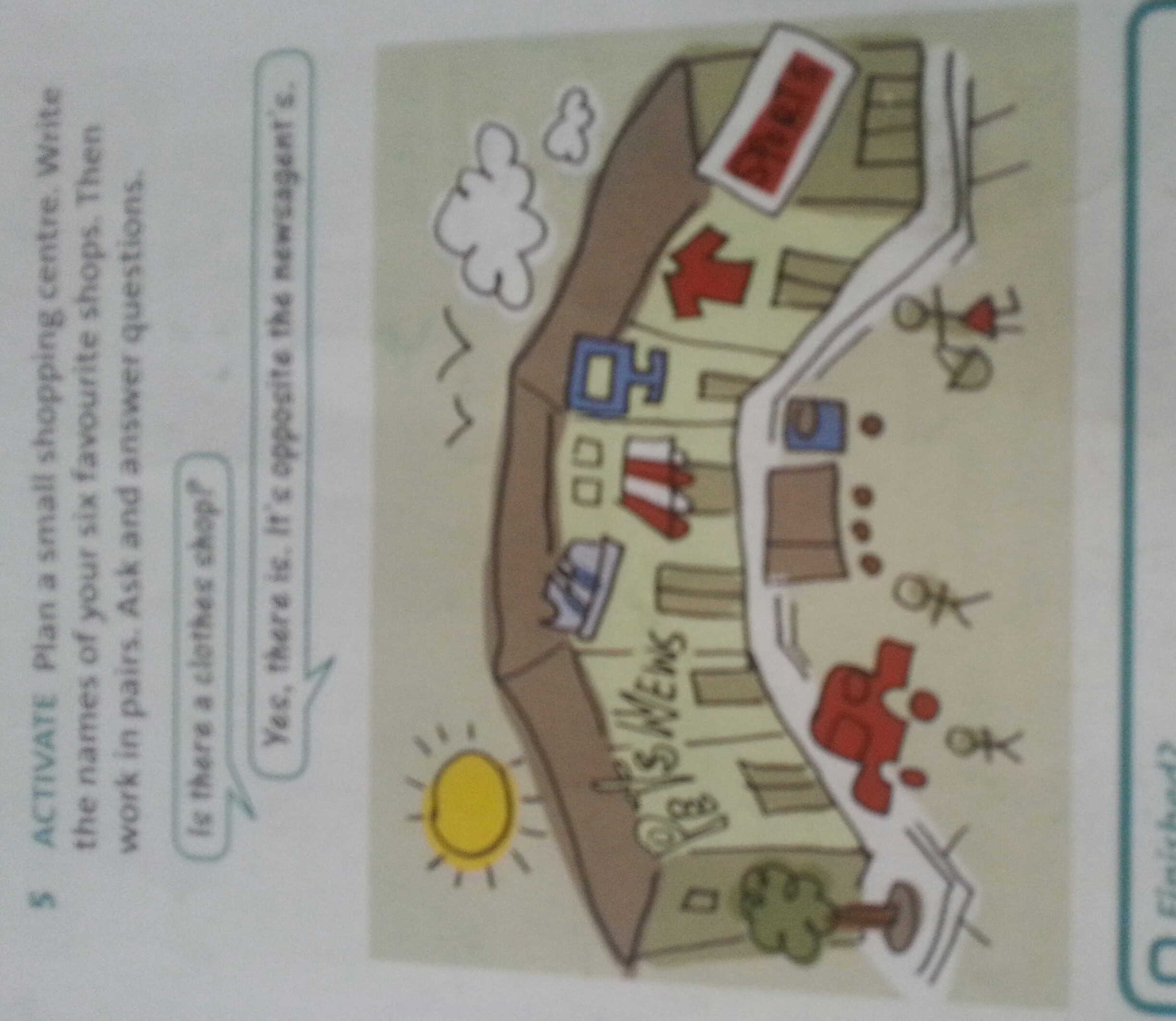 Что тебе нужно - то? Перевод задания? Тебе нужно написать название твоих любимых магазинов (6 штук). Потом вы должны поработать в парах, спрашивая у друг друга такие вопросы, как на картинке.