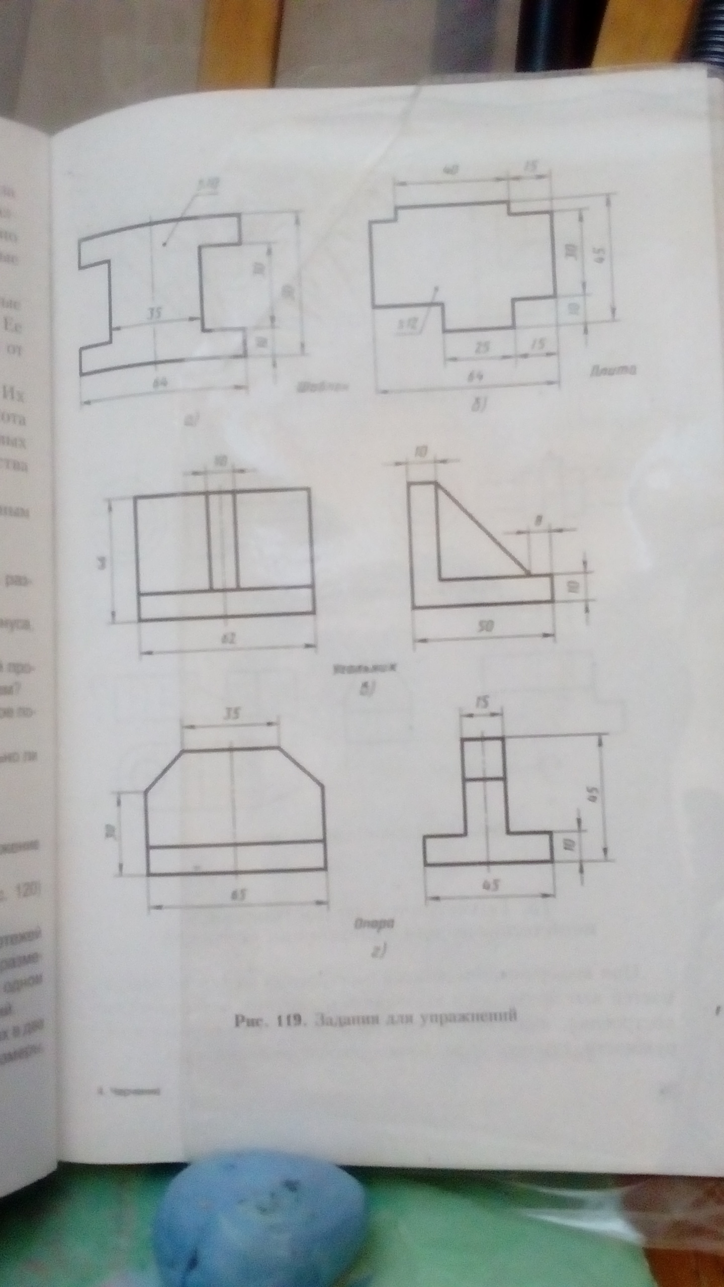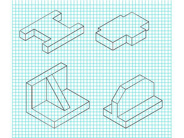 Начертите, пожалуйста эти детали в изометрической проекции и в объёме. Только сделайте это на листочек в клетку, пожалуйста.