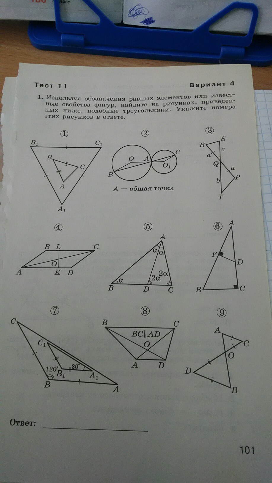 7. ΔABC ~ ΔA₁B₁C₁ по двум равным углам при основаниях равнобедренных треугольников