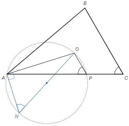 Пусть ON - диаметр описанной окружности треугольника AOP.