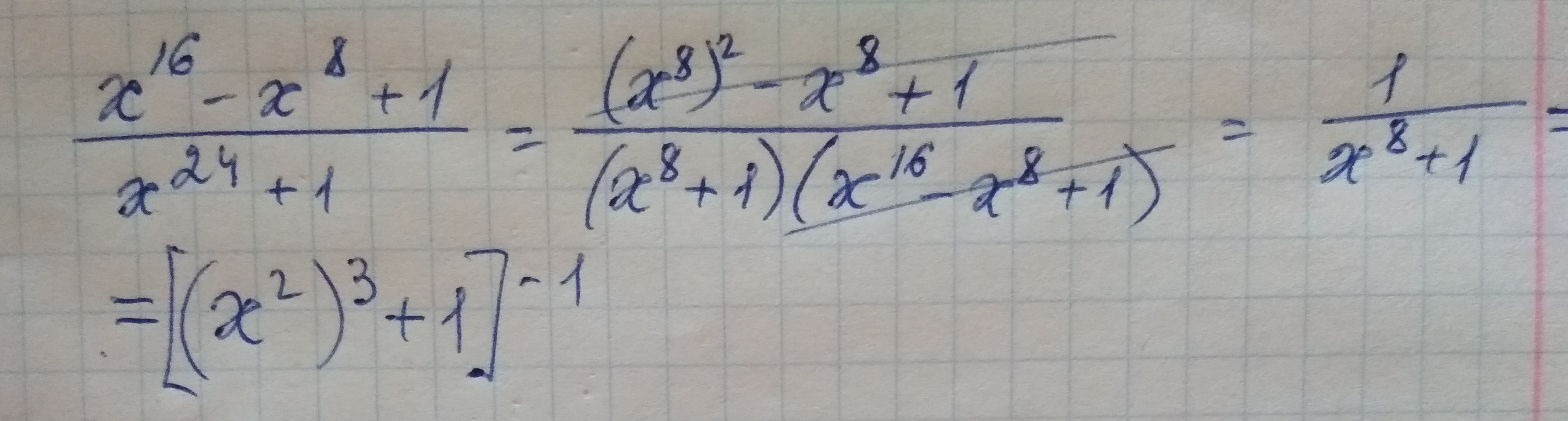 ![\frac{1}{ x^{8}+1 }=[( x^{2} ) ^{4}+1] ^{-1} \frac{1}{ x^{8}+1 }=[( x^{2} ) ^{4}+1] ^{-1}](https://tex.z-dn.net/?f=+%5Cfrac%7B1%7D%7B+x%5E%7B8%7D%2B1+%7D%3D%5B%28+x%5E%7B2%7D+%29+%5E%7B4%7D%2B1%5D+%5E%7B-1%7D++)