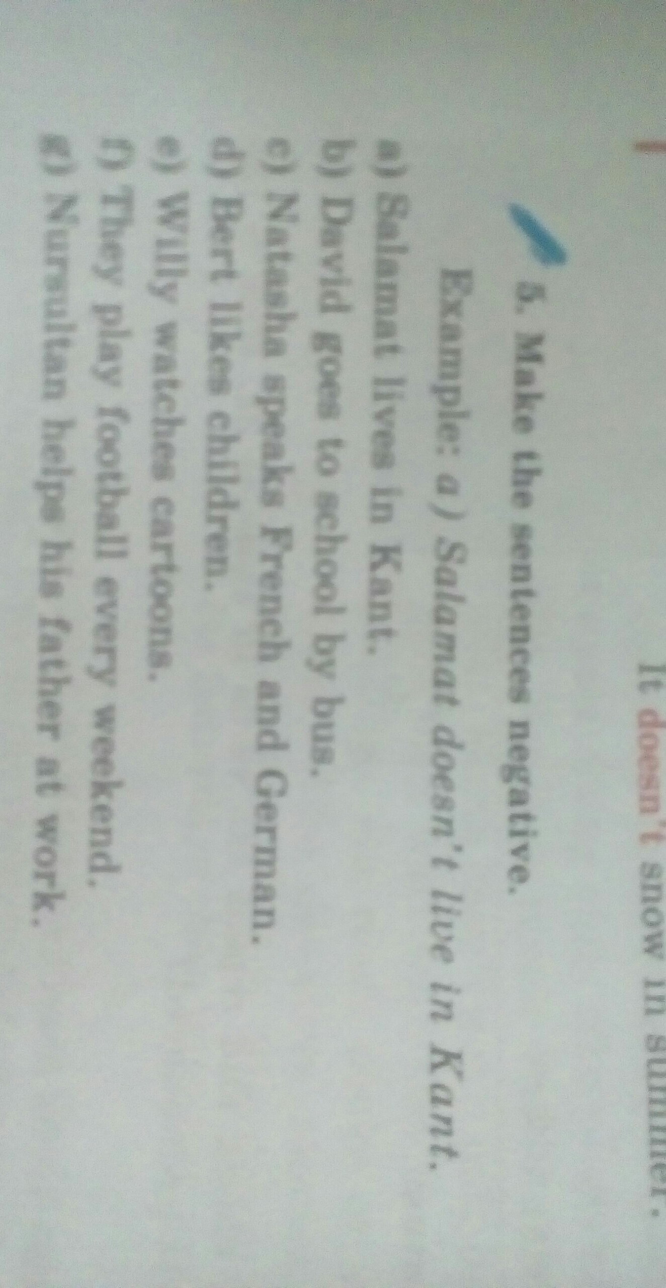 7. Nursultan doesn't help his father at work.