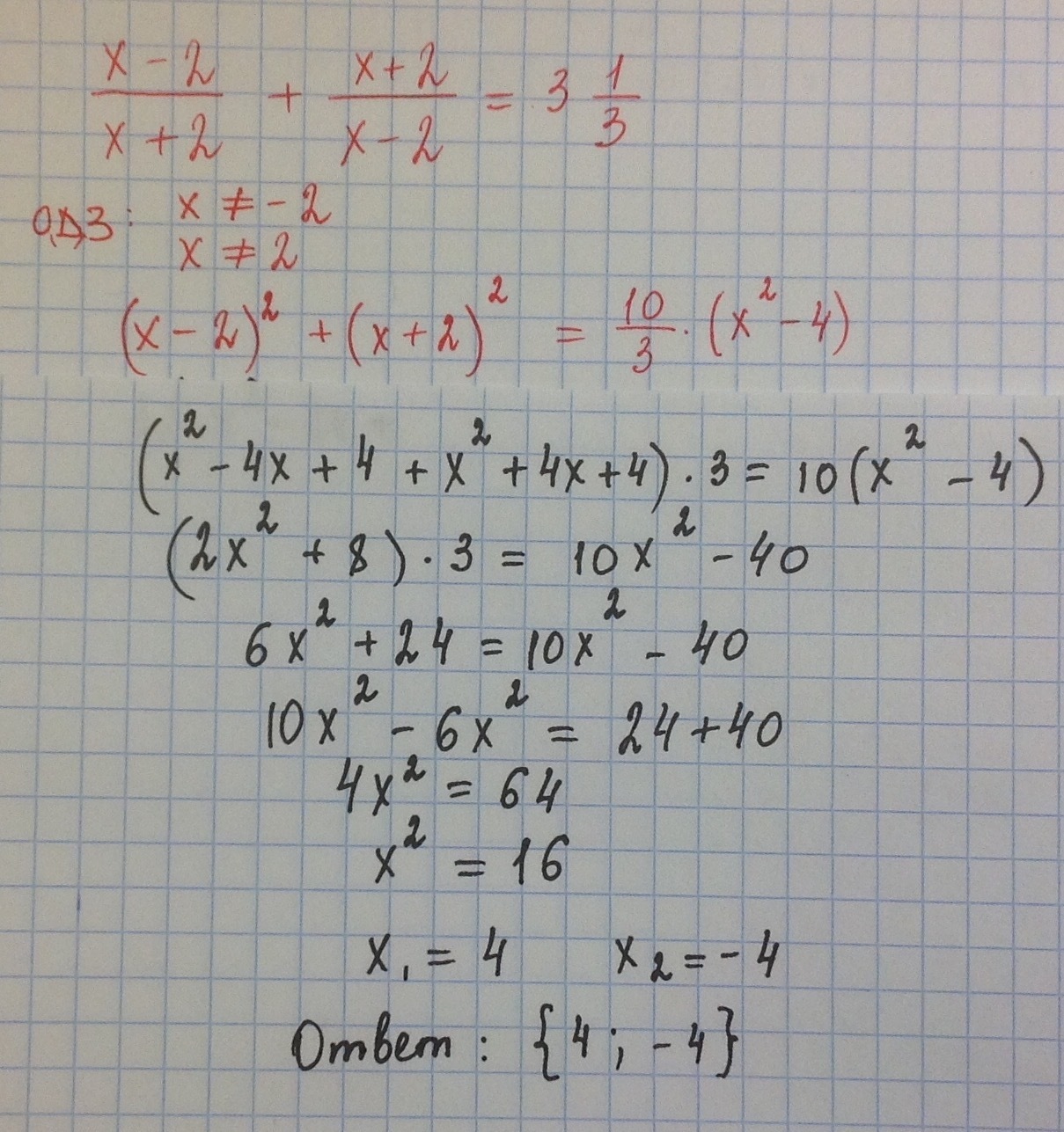 (x-2)/(x+2) =3 или (x-2)/(x+2) = 1/3 * * * 3 1/3 = 3 +1/3 сумма обратных чисел * * *