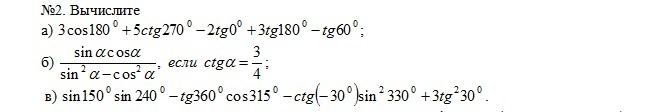 В первом примере все значения табличные и равны нулю кроме косинуса 180 градусов = -1 и тангенса 60 градусов = корень из 3
