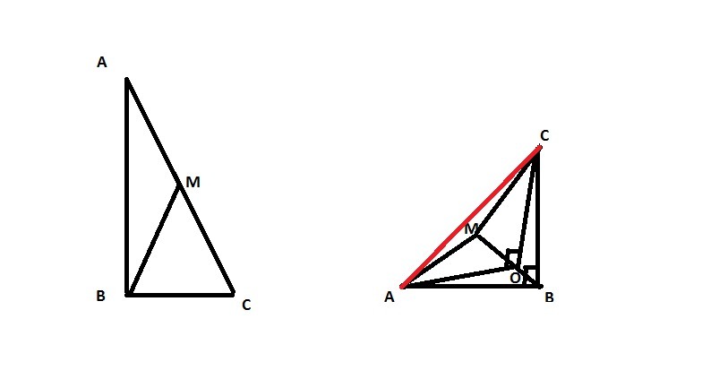 Теперь о перегибе: необходимо найти проекцию вершины А при cгибе по медиане ВМ на плоскость АВМ, это точка О на втором рисунке