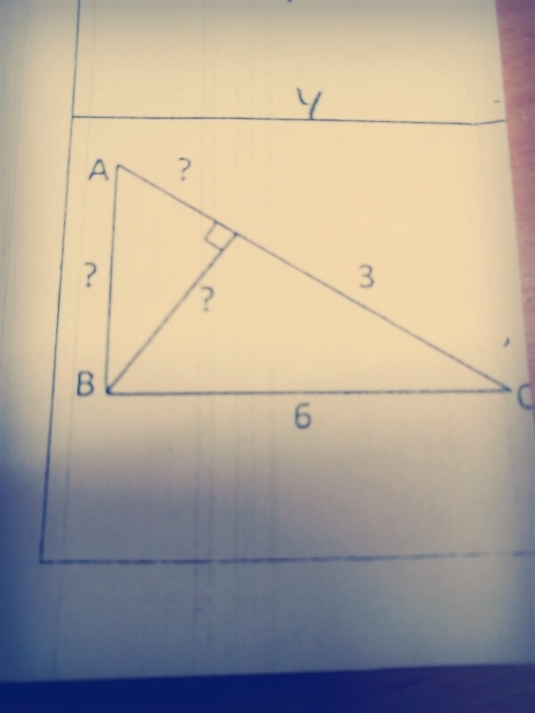 Найти пропорциональные отрезки в прямоугольном треугольнике ....Катет BC =6 Отрезок AC = 3 ....Катет AB ? Высота h ? ( на рисунке всё показано ) Помогите , пожалуйста ( нужен развёрнутый ответ , по формулам ) СРОЧНО!!!!!!!