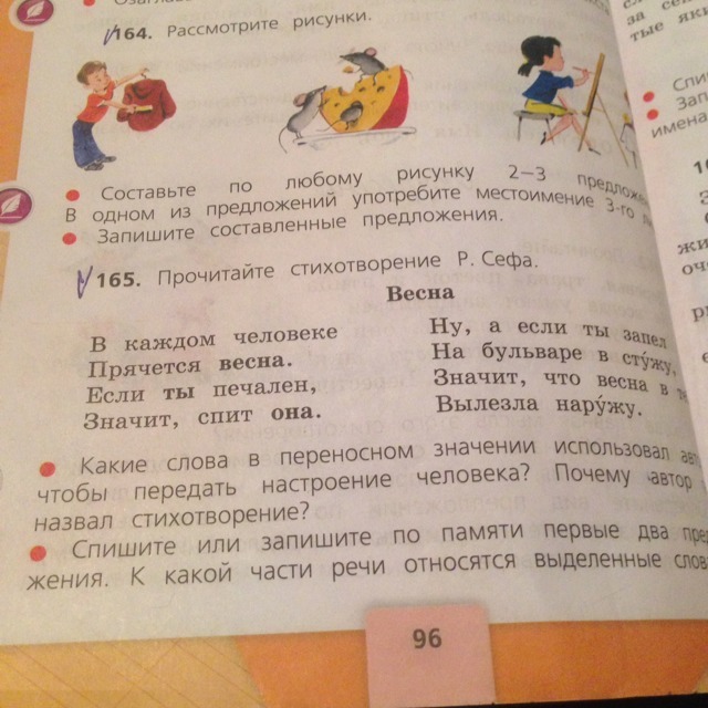 165. В переносном значении:прячется весна,весна вылезла, весна спит.