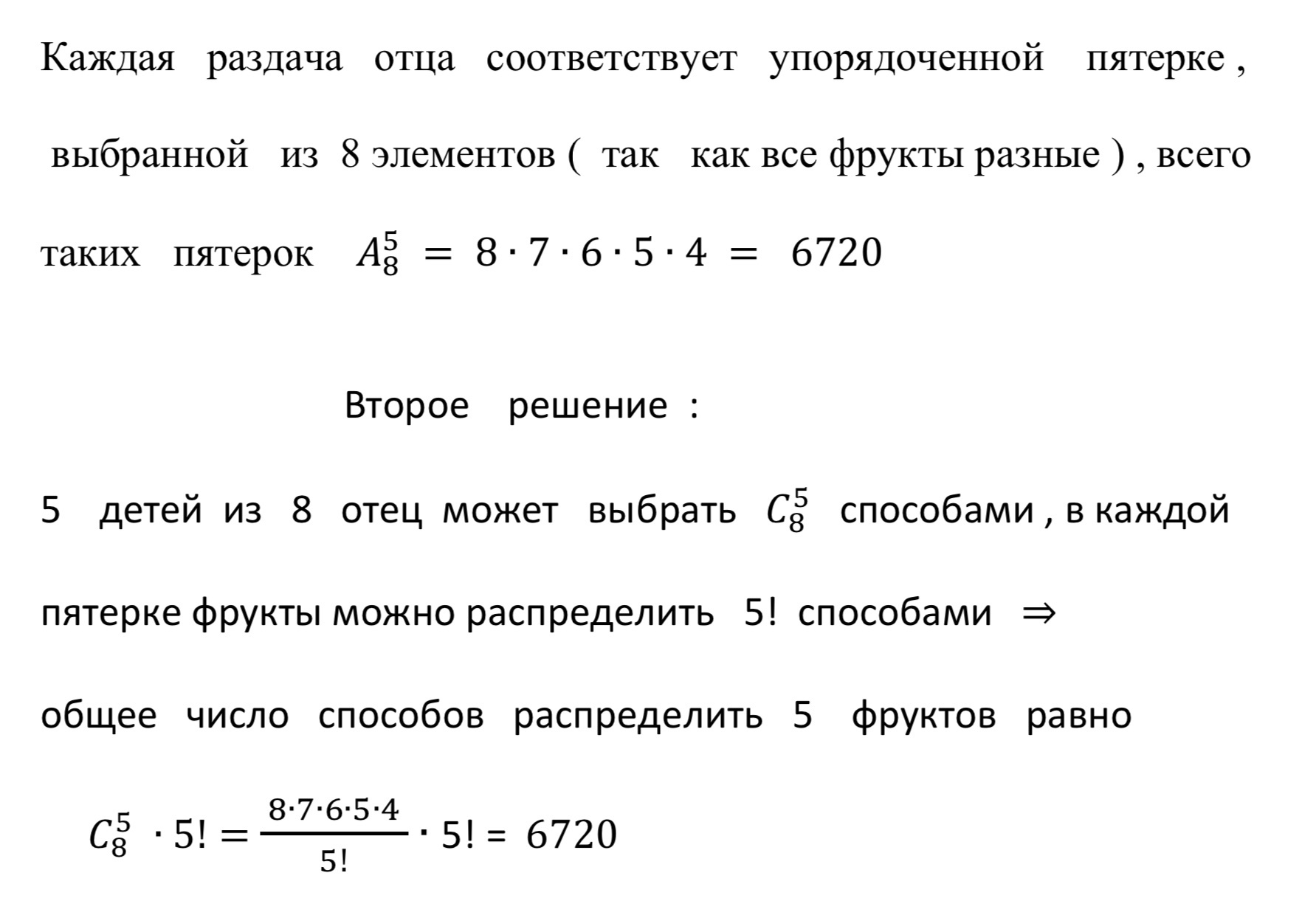 У отца есть яблоко, груша, банан, хурма, манго и 8 сыновей. Отец хочет раздать все фрукты детям, причём каждый ребёнок получает либо один фрукт, либо ничего. Сколькими способами он может это сделать?