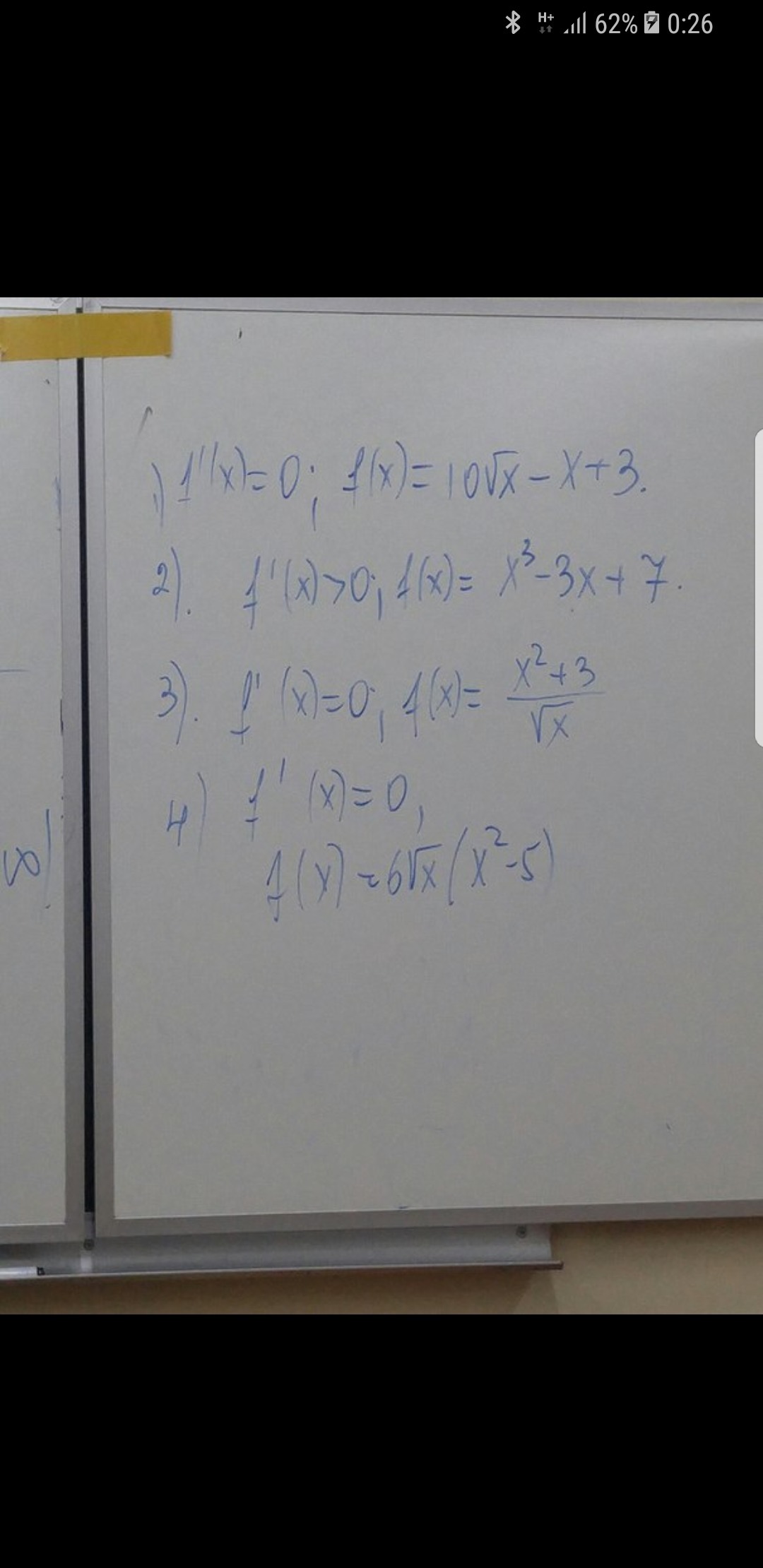 f'(x) = (2x*√x- (x² +3)*1/(2√x) )/ x = (4x² -x² -3)/(2x√x) = (3x² -3)/(2x√x);
