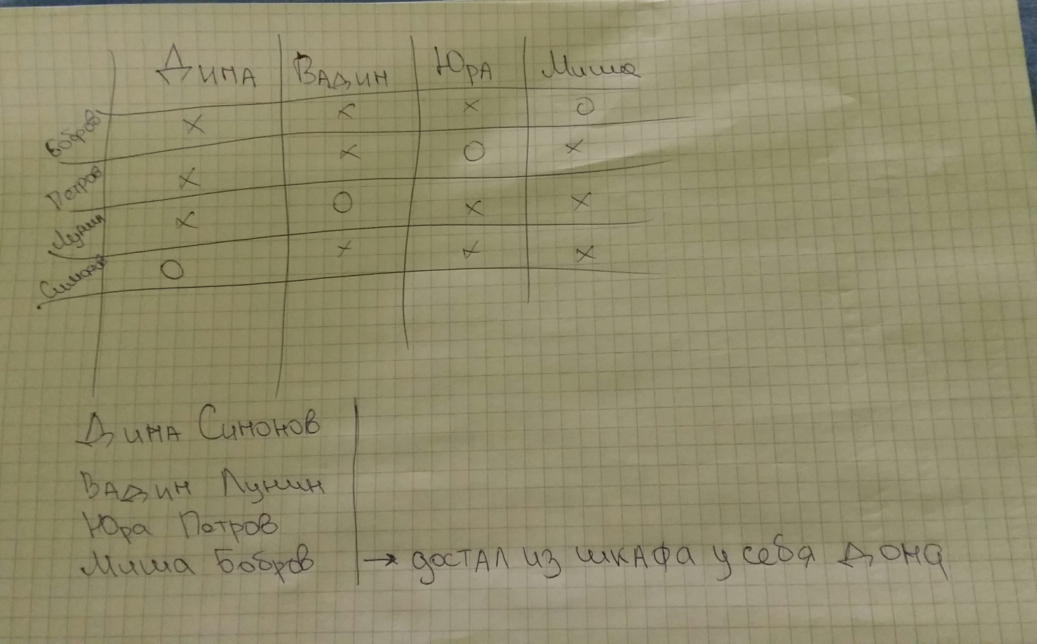 крестик в таблице это не подходящая фамилия.