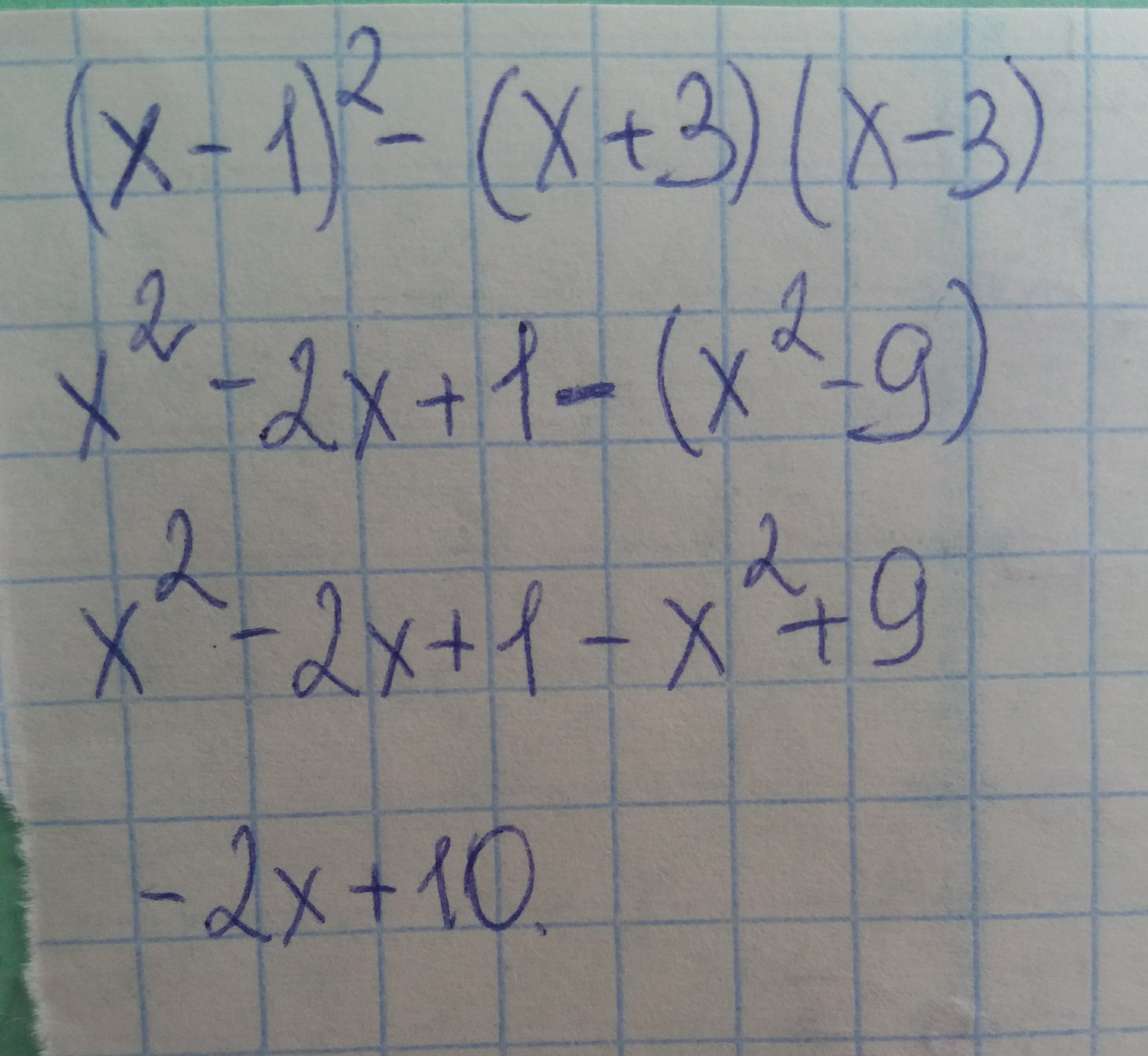 x^2-2x+1-x^2+9= 10-2x
