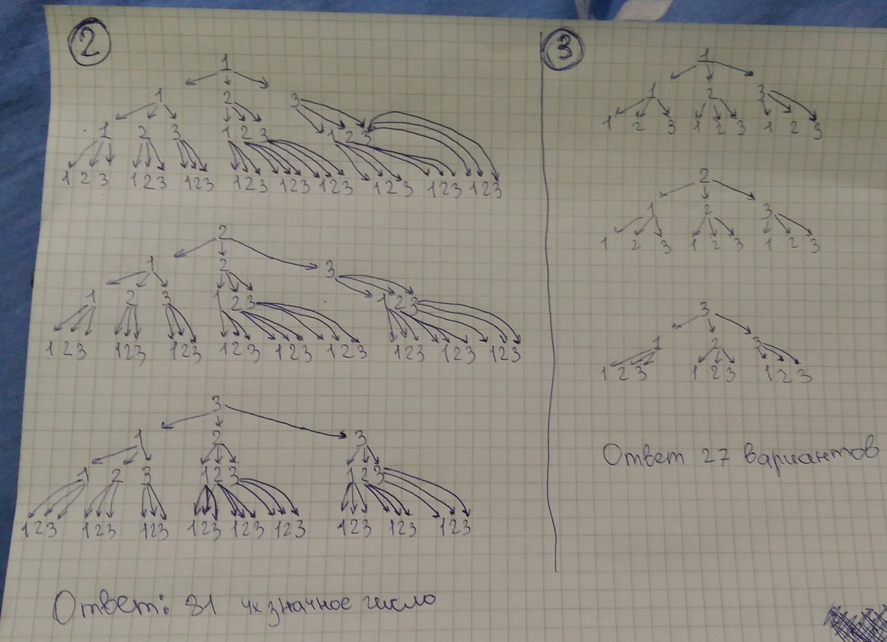 3.Грабители решили похитить из банковского сейфа деньги. В качестве пароля используются 3 цифры - 1,2,3.Сколько вариантов придётся им перебрать для того, чтобы открыть сейф?