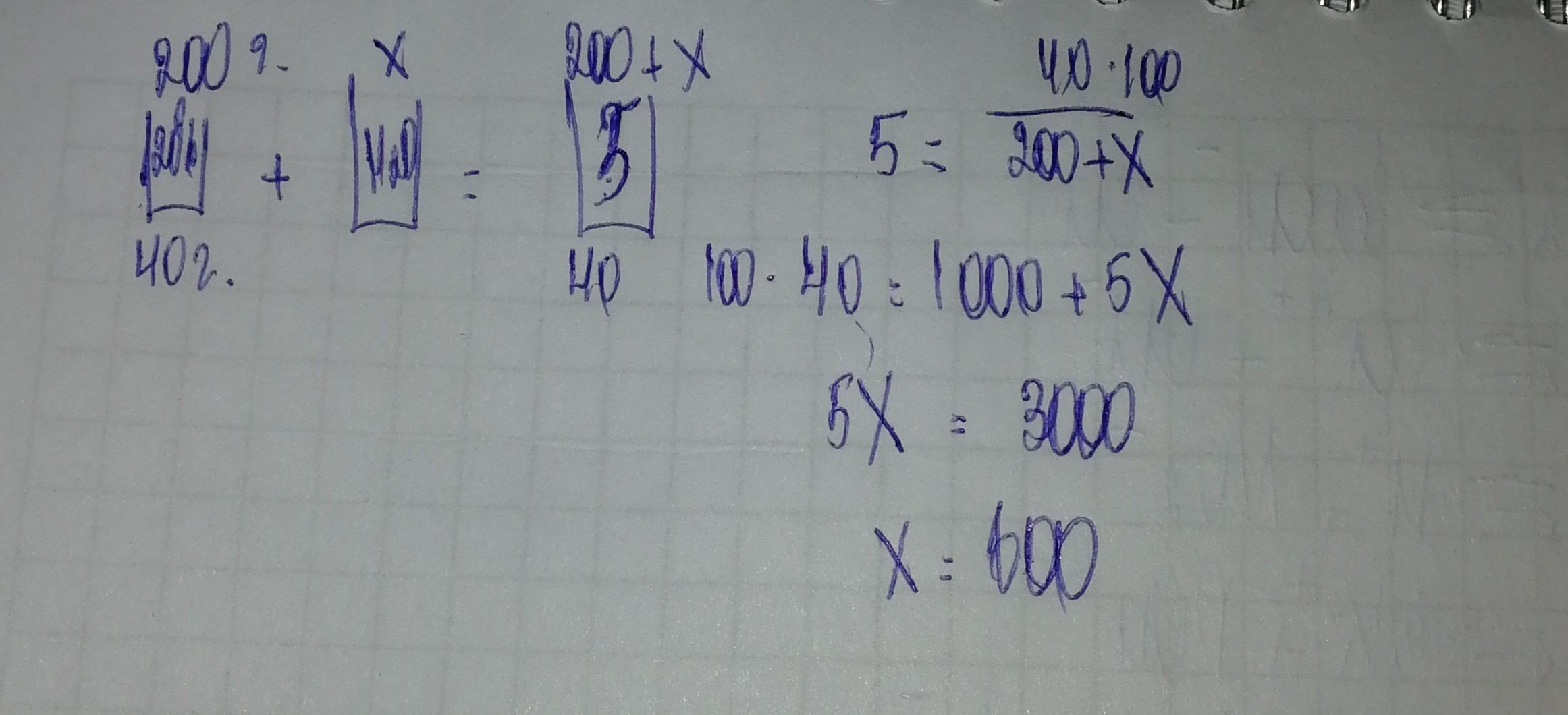 К 200 г 20%-ного раствора гидроксида калия надо добавить ____ г воды, чтобы раствор стал 5%-ным. Решение не надо, только ответ. 20 баллов