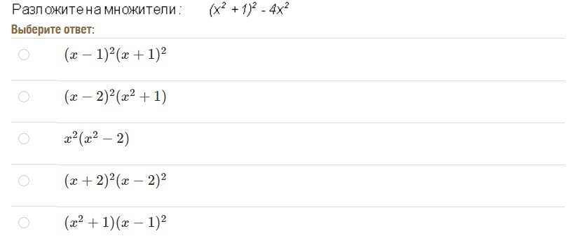 (x²+1)²-4x²=(x²+1-2x)(x²+1+2x)=(x²-2x+1)(x²+2x+1)=(x-1)²(x+1)²