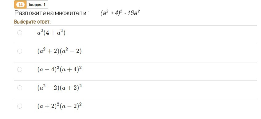 (a²+4-4a)(a²+4+4a)=(a²-4a+4)(a²+4a+4)=(a-2)²(a+2)²