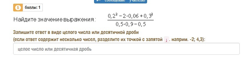 (1/5)²-0,12+(3/10)²/0,45-0,5=(1/25-3/25+9/100)/-0.05=1/100/-0,05=1/100/-1/20=-1/5=-0,2