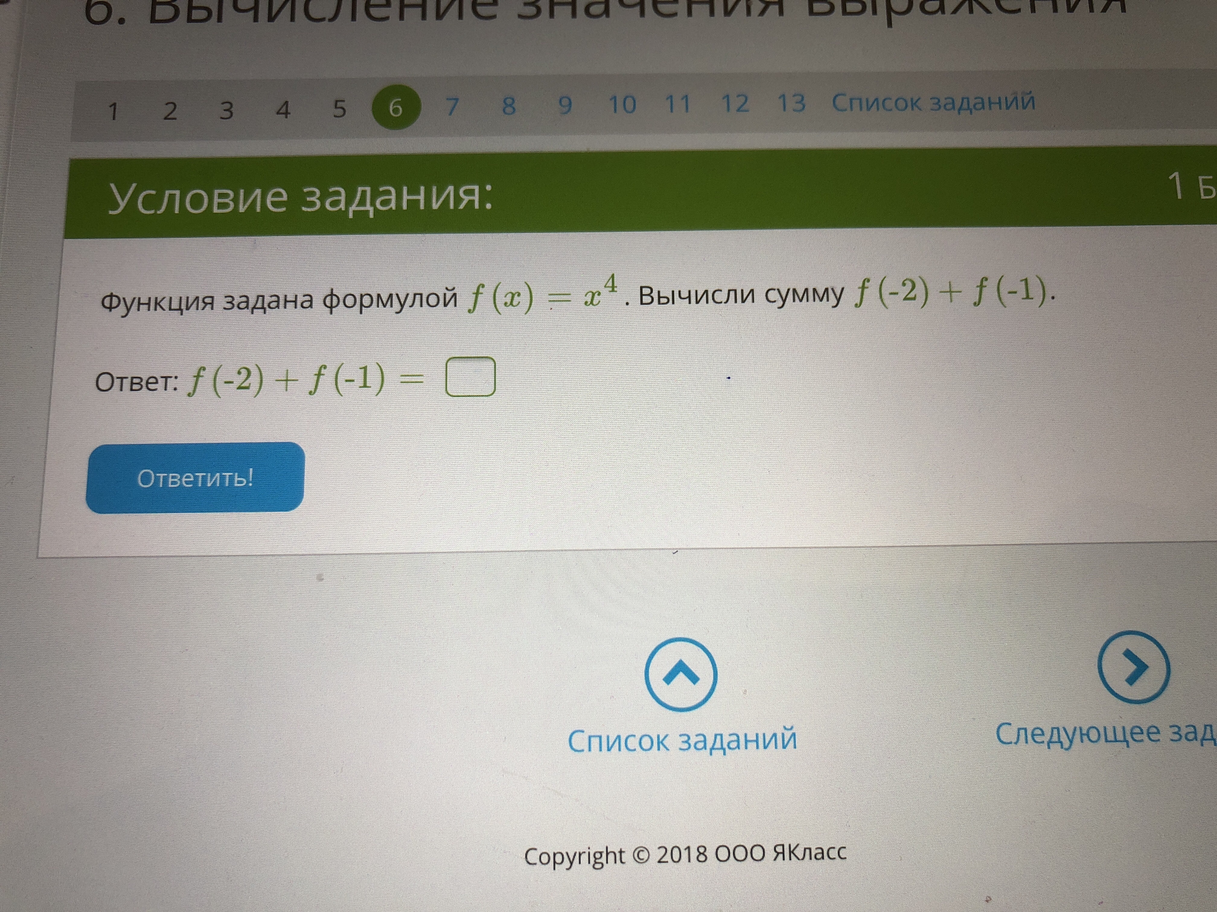 f(-2)+f(-1)=(-2)⁴+(-1)⁴=16+1=17