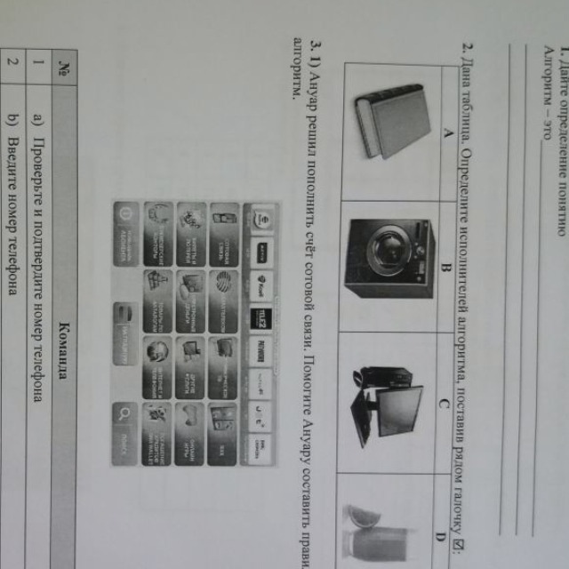Исполнители алгоритма: Б и Ц (т.е. компьютер и стиральная машина). Стиральная машина исполняет заданную программу стирки, а компьютер работает вследствие воспроизведения алгоритмов.