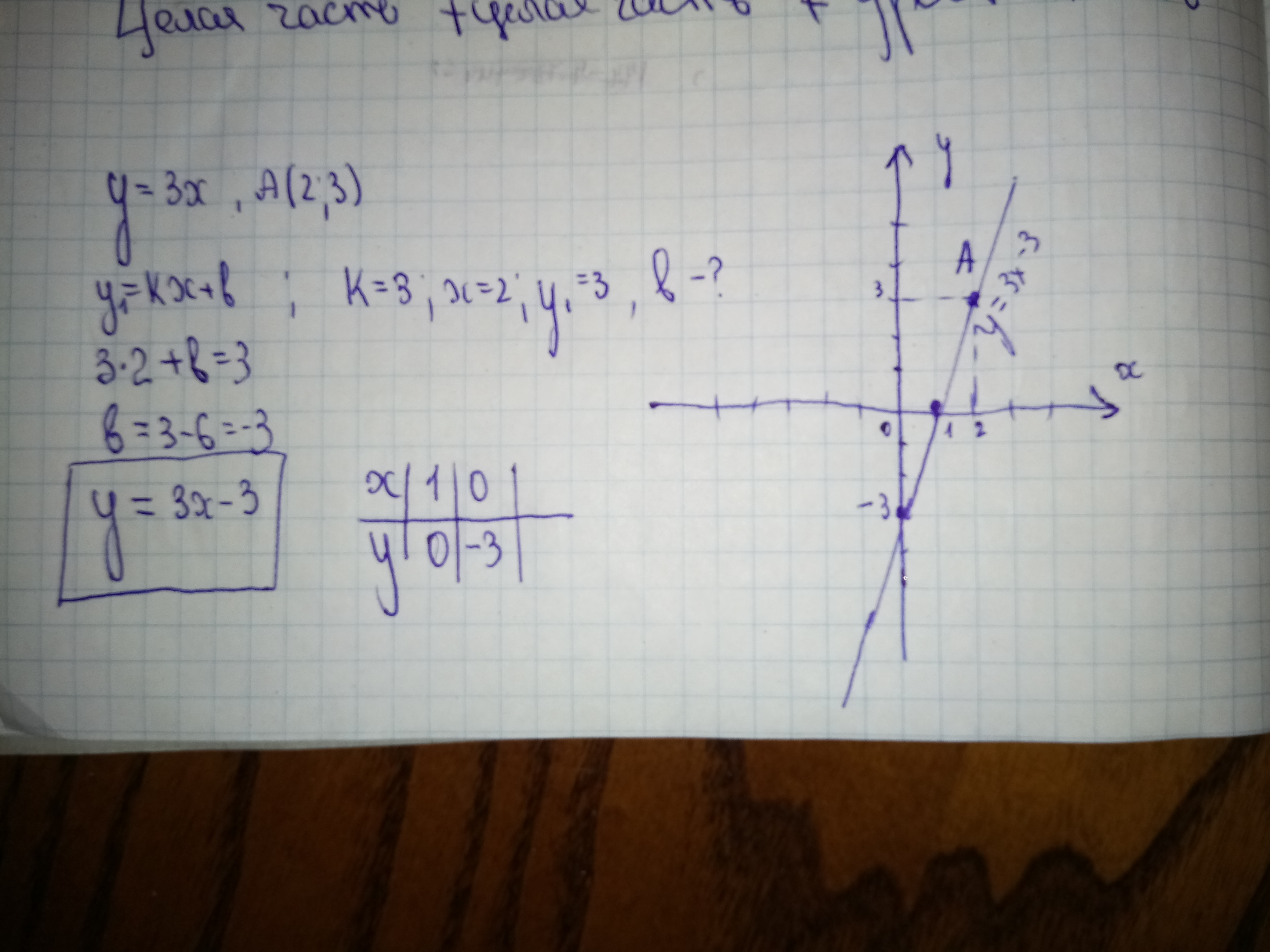 Напишите уравнение прямой, параллельной графику функции у = 3х и проходящей через точку А (2; 3). Постройте этот график.