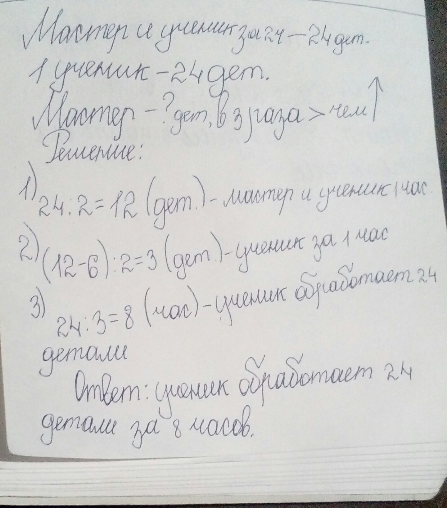 Ответ: ученик обработает 24 детали за 8 часов.