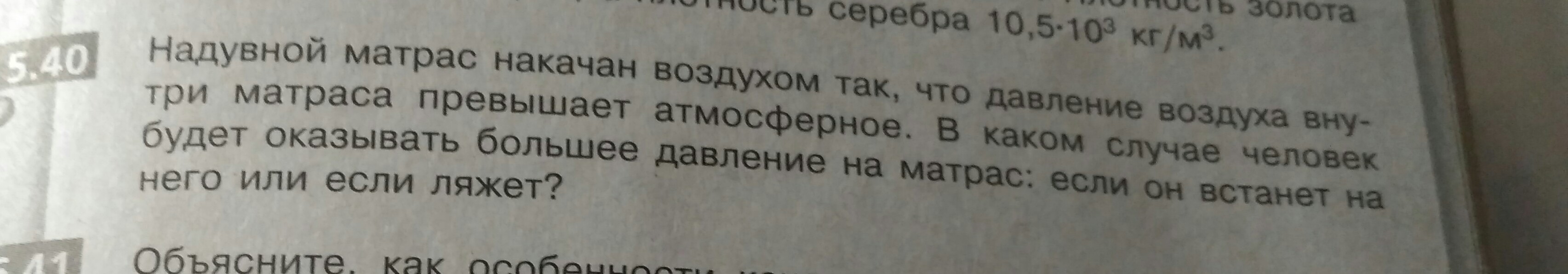 Р=F/S из формулы видно, что чем меньше площадь, тем больше давление, следовательно, когда человек стоит на матрасе, площадь соприкосновения его ног с матрасом меньше, чем, когда он лежит.