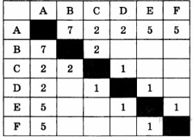 Между населёнными пунктами А, В, С, D, Е, F построены дороги, протяжённость которых приведена в таблице: