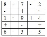 Впишите в пустые клетки числа от 1 до 9 так, чтобы результаты действий над числами по горизонтали и по вертикали были одинаковыми и равнялись 13. Помогитеее!!!
