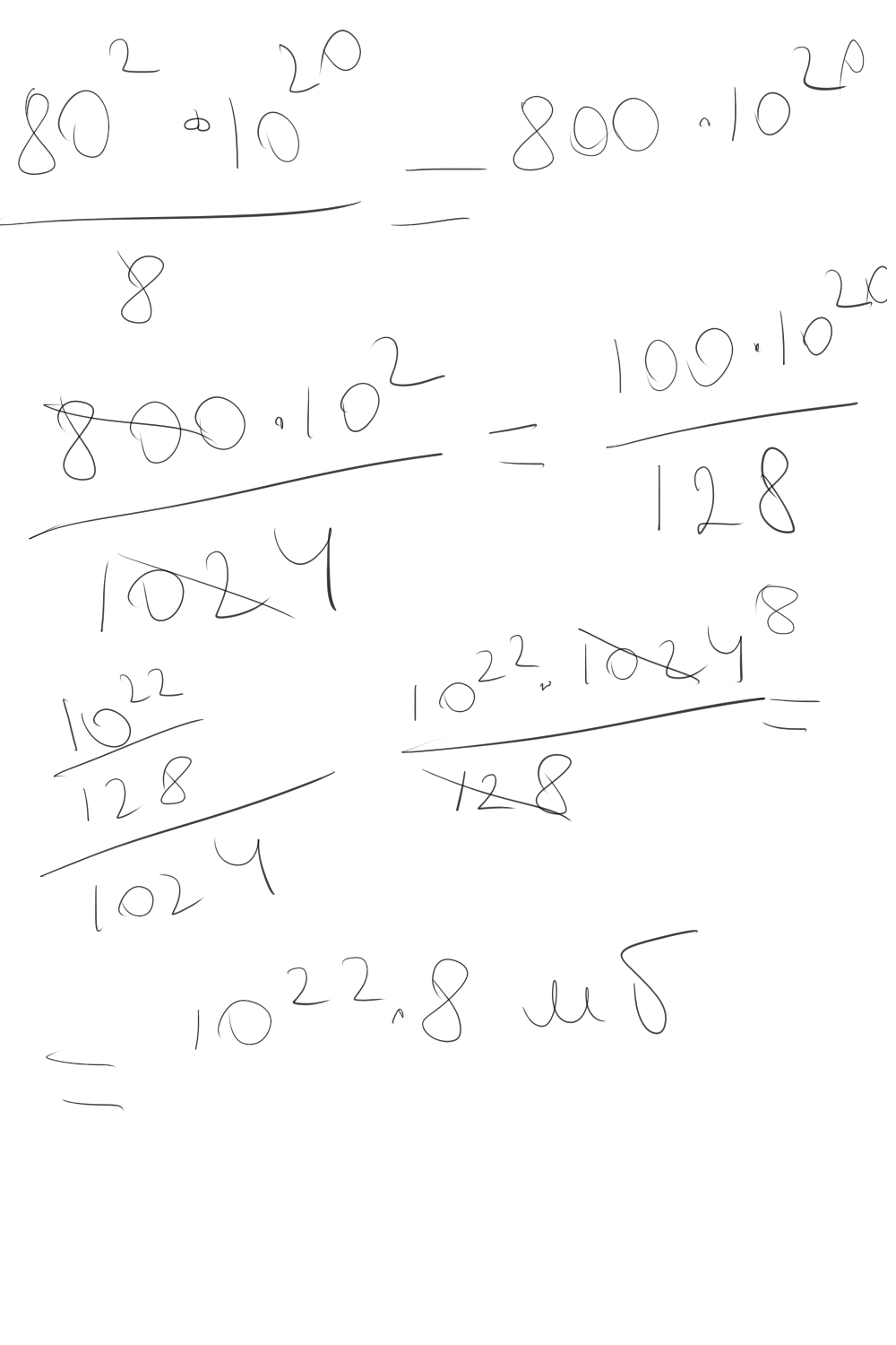 (800*10^20)/1024= (100*10^2)/128=(10^2*10^20)/128=10^22/128