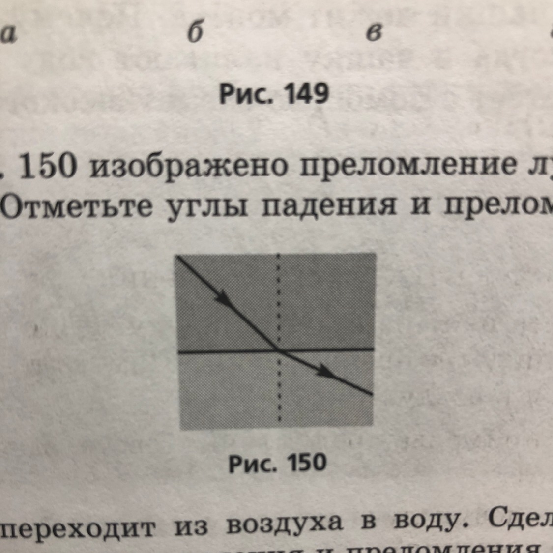 А чтобы найти угол преломления надо пунктиром продолжить угол падения и угол между предположительным направлением луча и фактическим будет угол преломления.