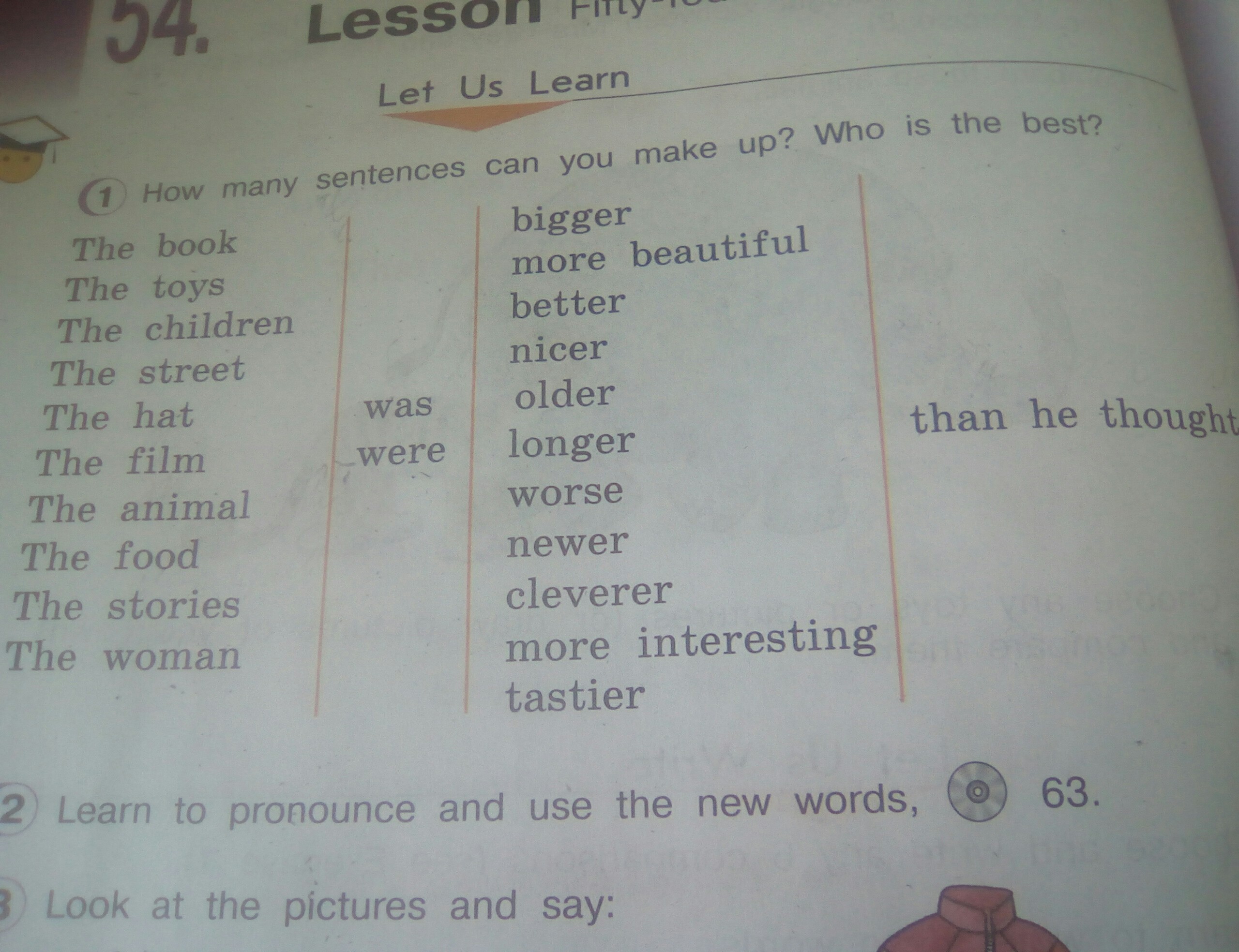 1. The book was bigger/more beautiful/better/nicer/older/worse/newer/more interesting than he thought.