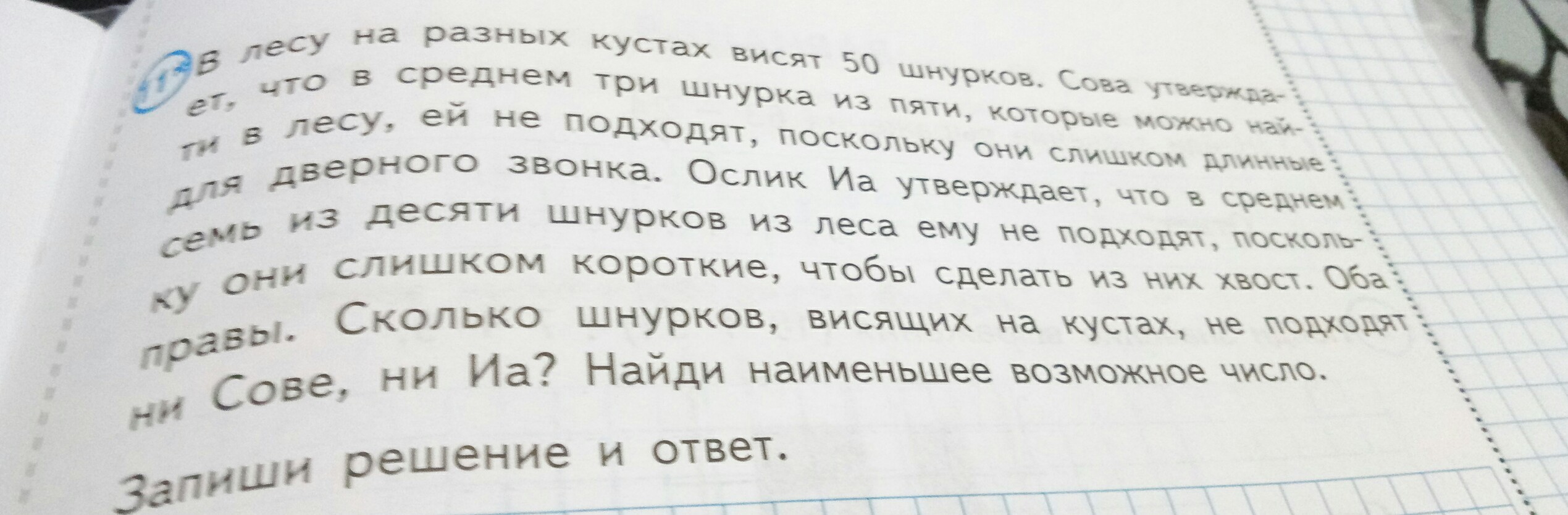 1) 50 : 2 = 25 (шнурков) - Сове не подходят;