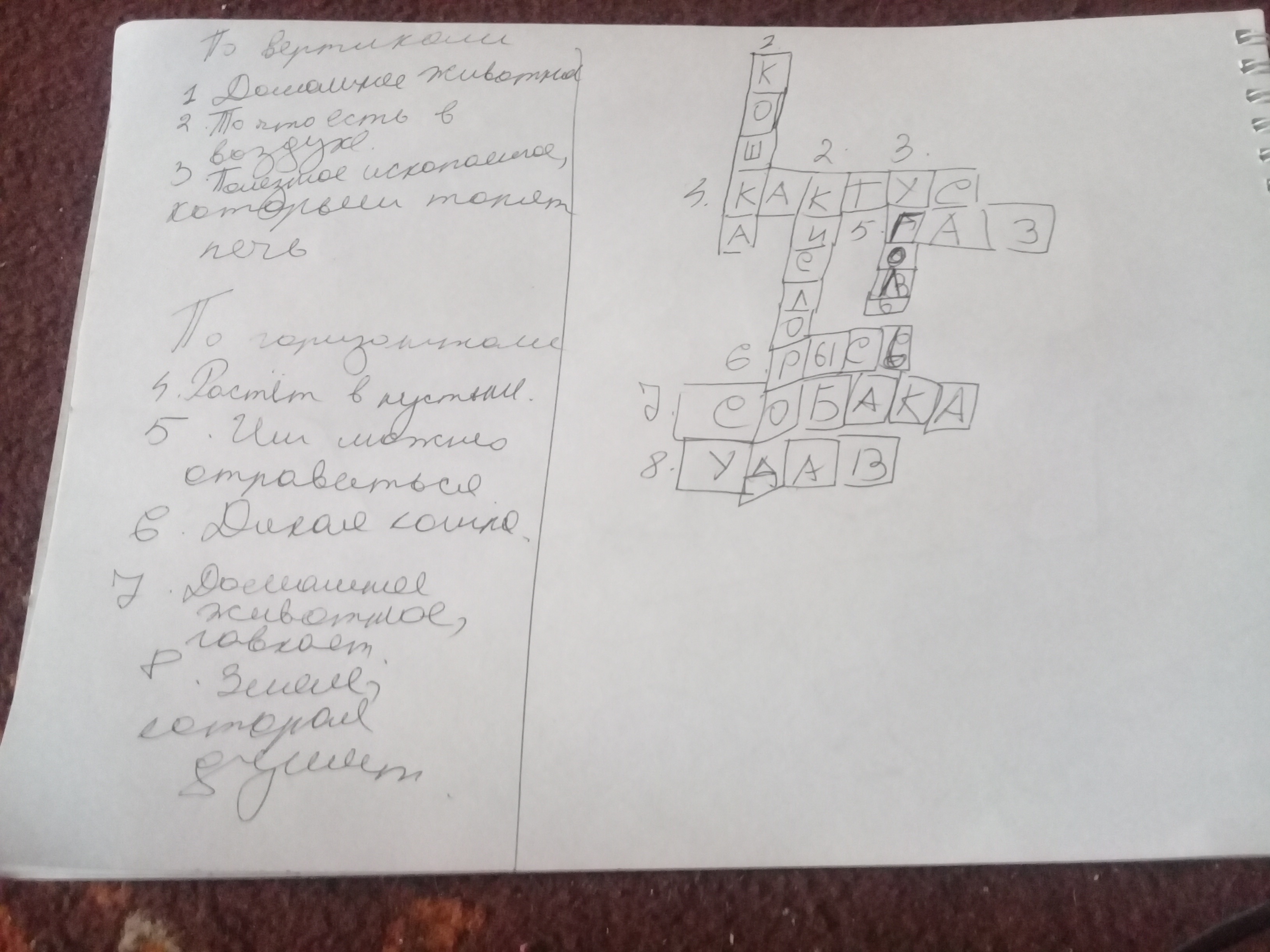 Составте кроссворд не менее 8 слов . план, воздух,вода, полезные, ископаемые, земли,почвы,растения,животные.