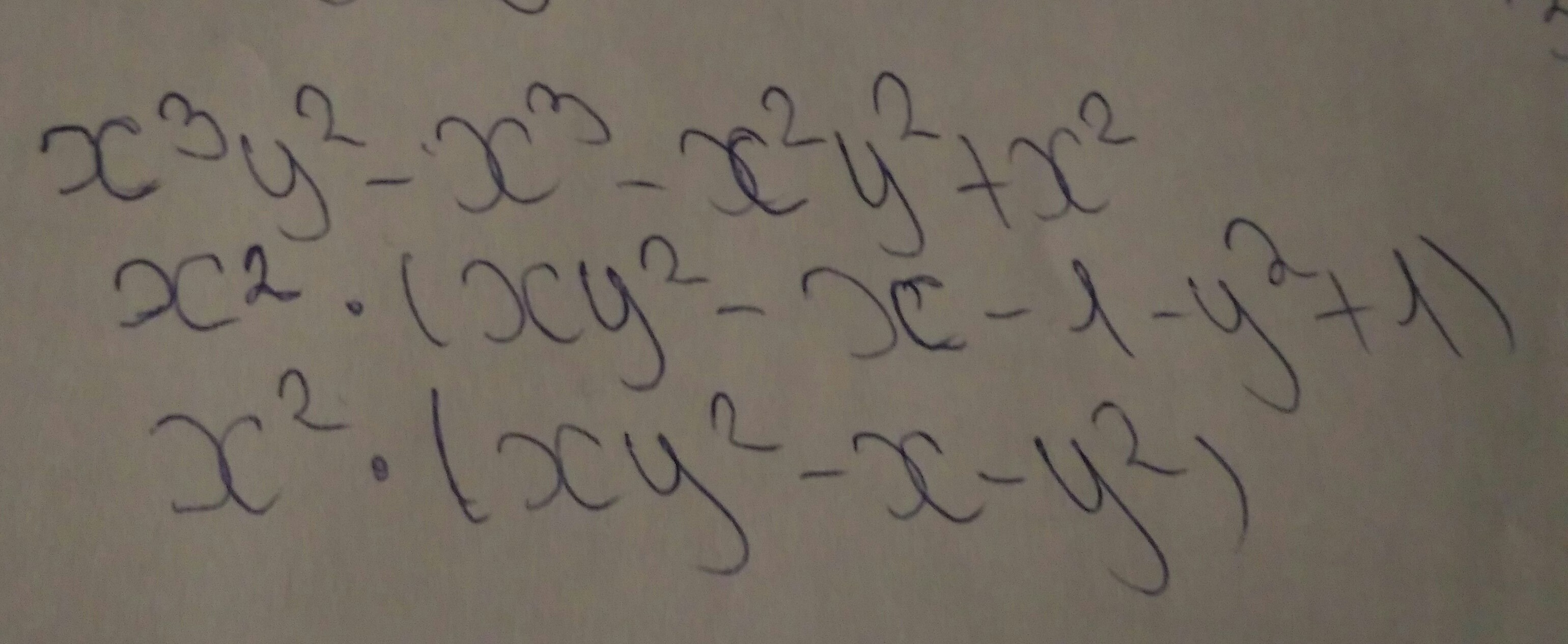 x³y²-x³-x²y²+x²=x³y²-x²y²-x³+x²=x²y²(x-1)-x²(x-1)=(x-1)(x²y²-x²)=