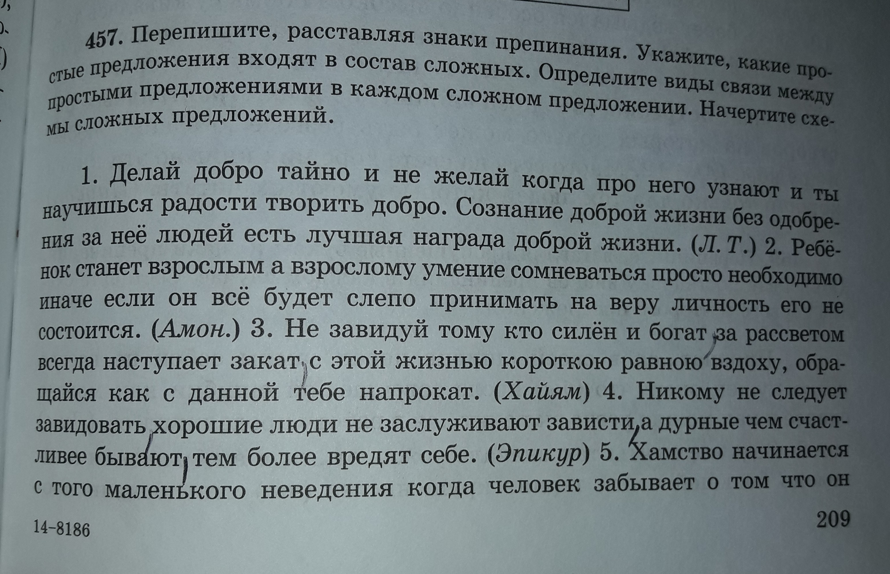 1.Делай добро тайно и не желай, когда про него узнают, и ты научишься радости творить добро. Сознание доброй жизни без одобрения за неё людей есть лучшая награда доброй жизни. 2.Ребенок станет взрослым, а взрослому умение сомневаться просто необходимо, иначе, если он все будет слепо принимать на веру, личность его не состоится.3.Не завидуй тому, кто силён и богат. За рассветом всегда наступает закат.С этой жизнью короткой, равною вздоху, обращайся как с данной тебе напрокат!4.Никому не следует завидовать, хорошие люди не заслуживают зависти, а дурные, чем счастливее бывают,тем более вредят себе.5.Хамство начинается с того маленького неведения, когда человек забывает о том, что он должен, а вершины своей хамство достигает тогда, когда человек перестает быть должным.