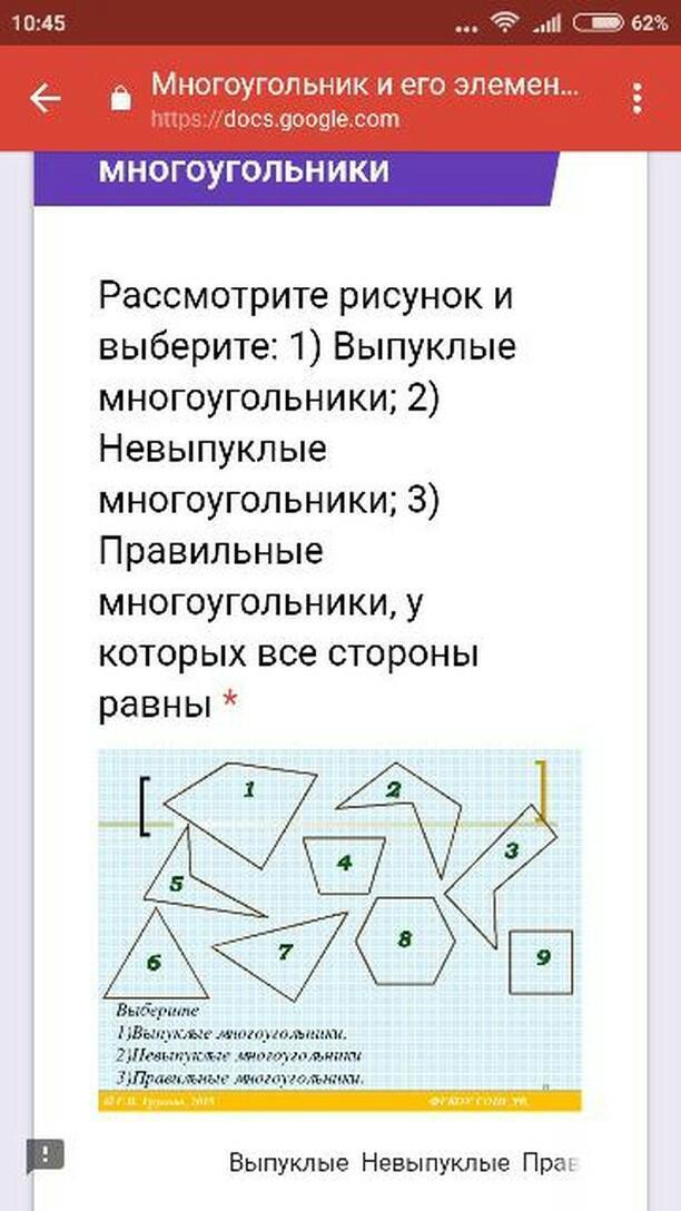1) любой треугольник является выпуклым. 1,4,6,7,8,9.