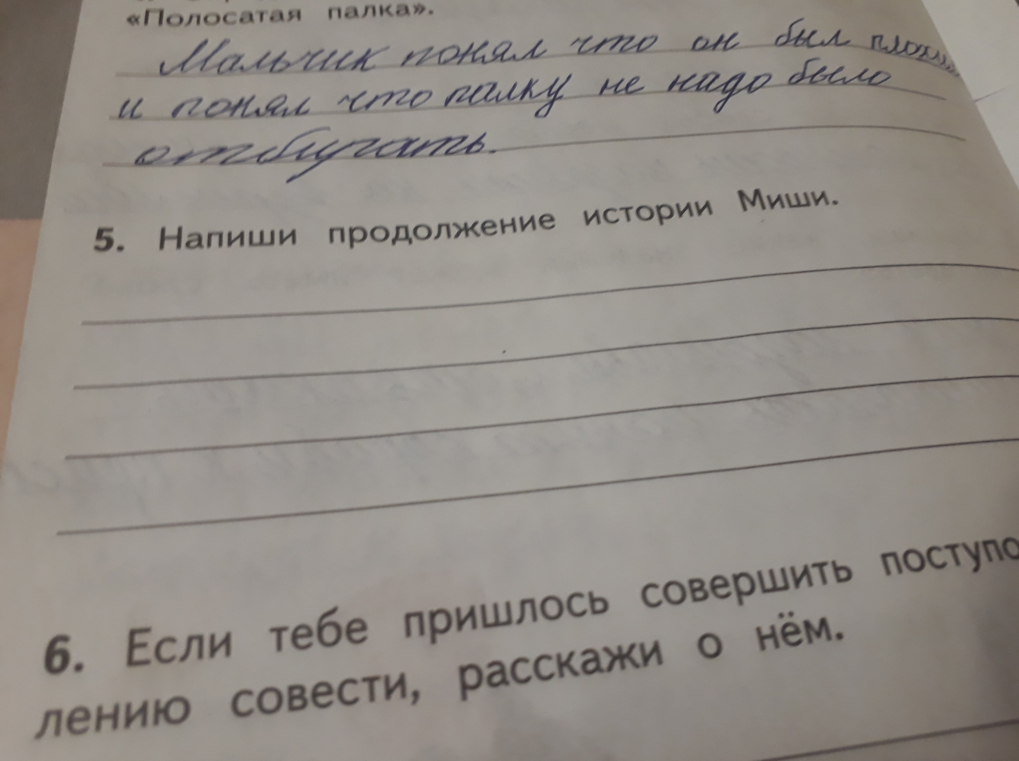 Срочно! Напиши продолжение истории Миши.Рассказ 《Полосатая палка》 Можно короткую 4 строчки?)