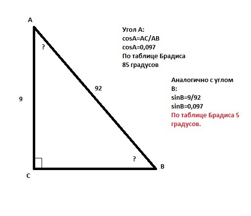 прямоугольном треугольнике АВС (С=90°) АС=9 см, АВ=92 см. Найдите острые углы и катет ВС