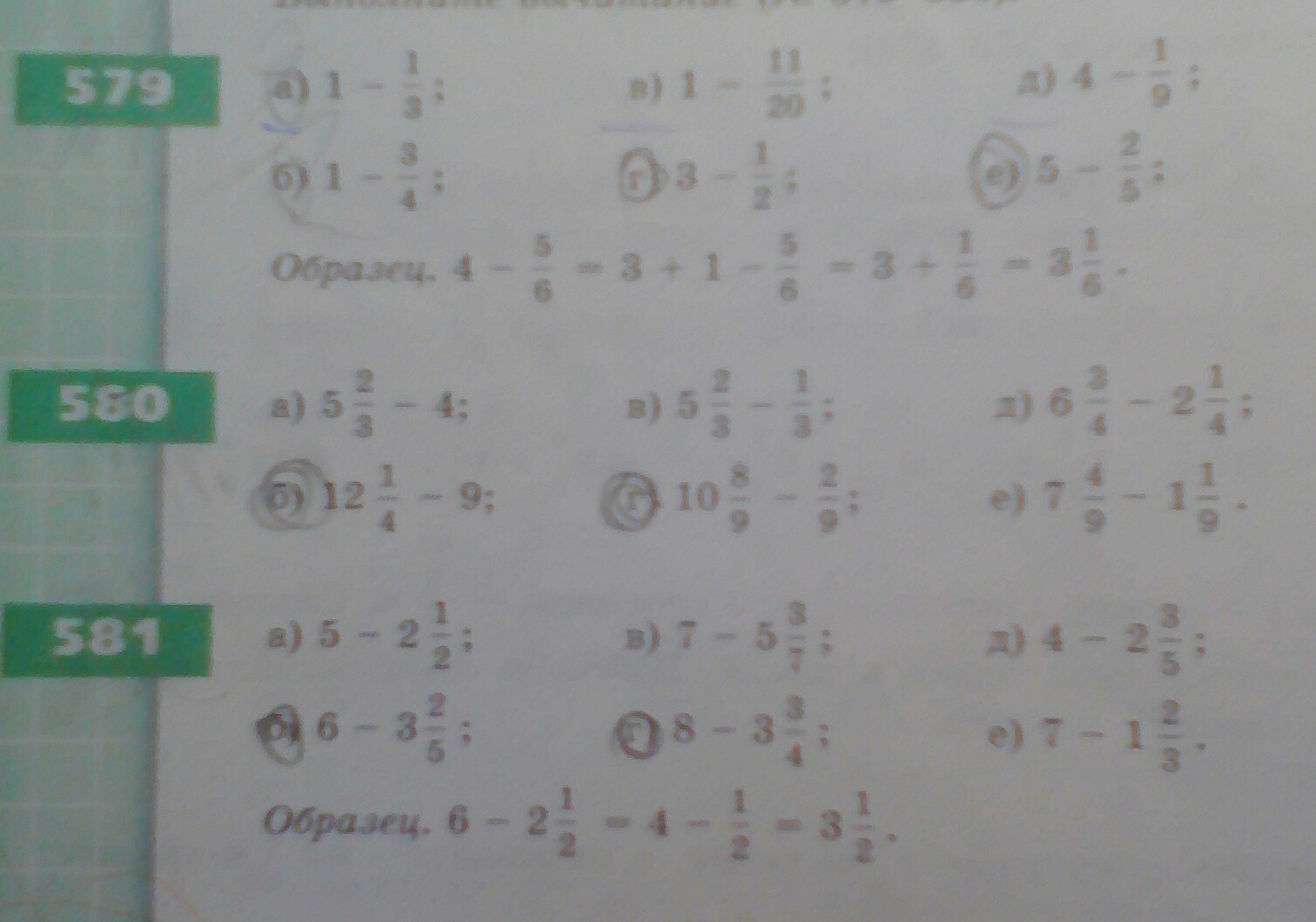 579 г)3/1-1\2=5/2=2,1/2 е)5/1-2/5=4,3/5