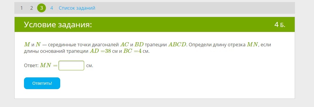 MN=(38-4)/2=34/2=17 Ответ: 17