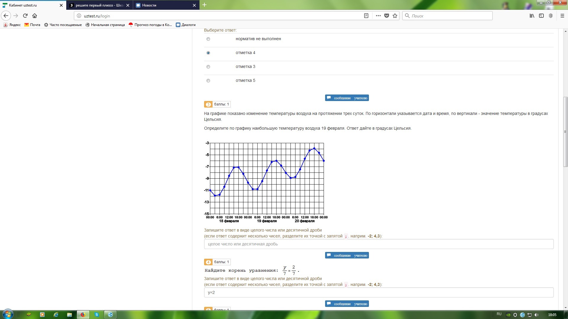 -6 градусов. Просто по графику находишь 19 февраля и ищешь самую высокую точку