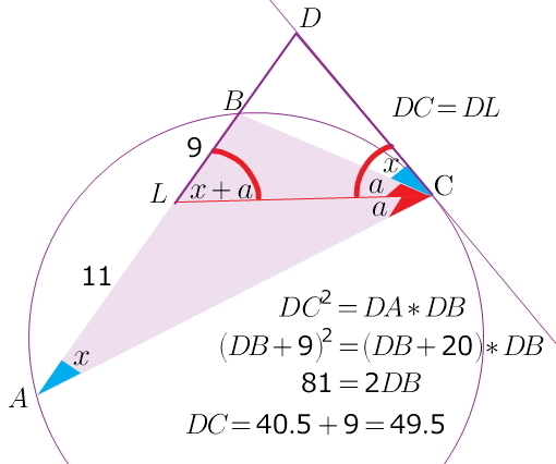 легко заметить, что треугольник DLC окажется равнобедренным))