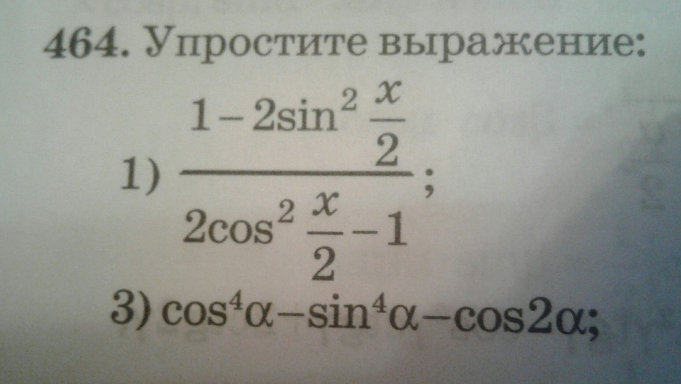 (Sin(x/2)^2+cos(x/2)^2-2sin(x/2)^2)/(2cos(x/2)^2-cos(x/2)^2-sin(x/2)^2)=(cos(x/2)^2-sin(x/2)^2)/(cos(x/2)^2-sin(x/2)^2)=1