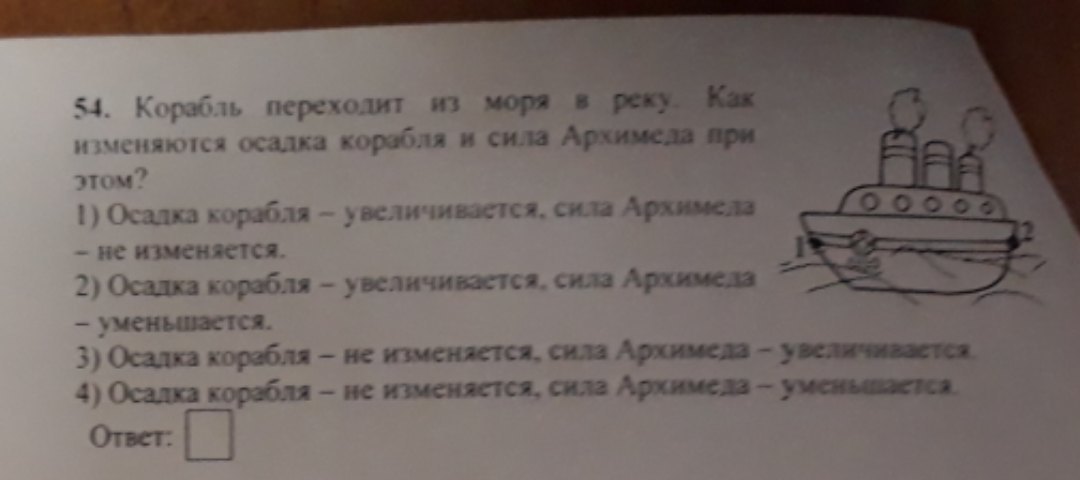 Ответ:1, т.к. в реке плотность воды меньше, чем в море.